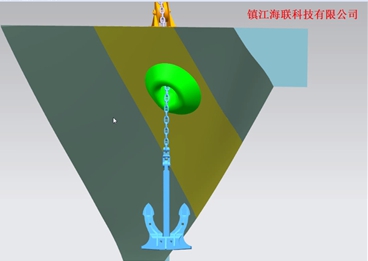 經過與國內行業權威設計院的合作過,并將該技術應用于船舶建造中,對錨鏈筒、錨臺、錨唇、錨穴、錨、錨鏈、錨機、止鏈器、導鏈滾輪、船體等進行三維設計和自動建模,實現了三維錨系計,保證了錨系設計中空間位置定位的準確性,并通過三維軟件導出二維CAD圖紙,扭轉了一直以來二維圖紙與船廠錨系施工脫節的局面,極大提高了錨系設計的效率。除此之外,利用軟件的后期的仿真功能,模擬并預報收錨過程的動態效果并給出調整方案。
